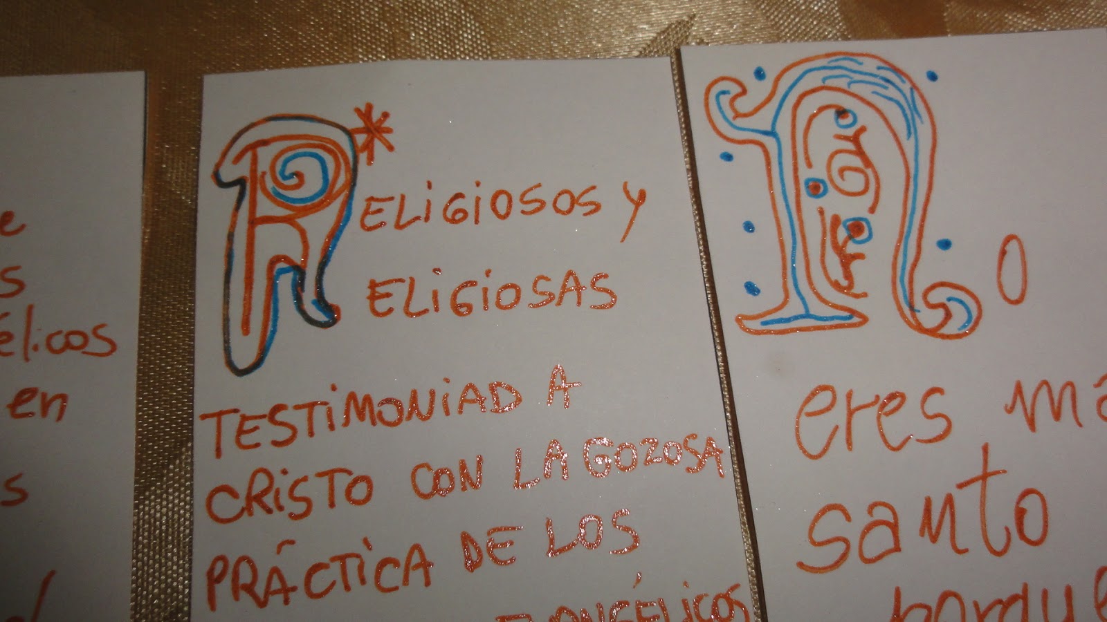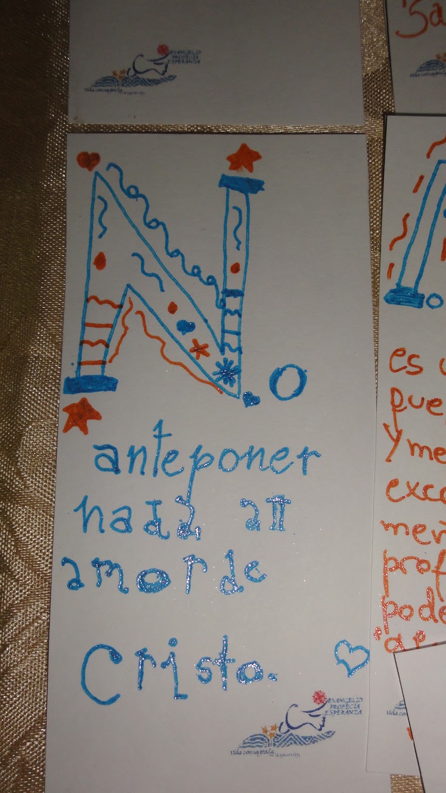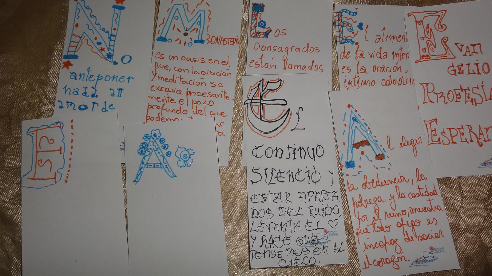 Les cuento como lo hicimos. utilizamos word, con cuadro de texto diseñamos el tamaño de los marcapaginas, le agregamos el logo bien pequeñito abajo. Luego buscamos en internet "alfabeto uncial", copiamos varios en word, una vez que elegimos las frases fuimos recortando (con la opción recortar de word) la letra del comienzo, llamada letra capitular. Una vez que estaba sola la ampliamos y asi las fue copiando mi hija con las biromes de brillito y microfibras, quién tenga mas destreza con plumones o marcadores biselados puede hacer un trabajo más prolijo y profesional. Incluso se puede vender, esto es solo recreativo y para regalar.