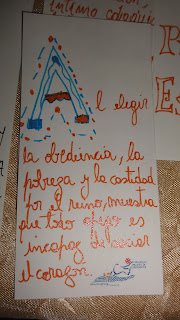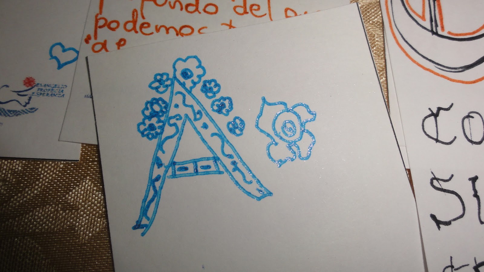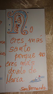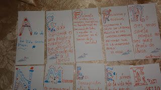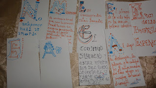 Lo cierto es que concretamos con mi hija esta hermosa tarea, al principio se frustró, le parecía que era imposible realizar letras decoradas "tan difíciles" pero elogiandola y alentandóla fue descubriendo que era hermoso, que tampoco era necesario que queden igual a las del libro o la compu, que precisamente al ser tan decoradas se pueden arreglar y que finalmente ella no es una escriba solo estamos emulando una actividad para aprender, compartir y disfrutar...entró en un entusiasmo tan grande que a las ultimas las diseñaba ella sin mirar en nada. Ahora orgullosa está regalando loss eñaladores a familias amigas para seguir promoviendo, recordando y celebrando este magnífico año.