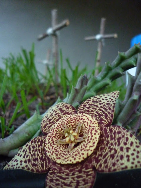 En armar en un tamaño relativamente pequeño la escena del sepulcro vacío, usamos una bandeja, maceta, "cacharro", paila redonda. le colocamos tierra  mas elevada en una parte y mas plana en otra para que se forme como una montañita, en la parte elevada colocamos algo ahuecado que hace las veces de sepulcro yo en general uso una maceta pequeña, un año usamos hasta una cáscara de un zapallo ahuecado, la podemos armar con arcilla, un frasquito, etc. Por encima se colocan las tres cruces hechas con palitos pueden ser juntados de la naturaleza, de helado, de maderitas, de brochete...se plantan semillas unos días antes para que el domingo esté verde y se pueden agregar algunas crasas y carnosas...si estas artes jardineriles no son su fuerte se arregla con "pastito" de cotillón y flores artificiales, quedan muy bien también..