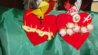 Se me ocurre que una hermosa actividad puede ser realizar los corazones con tela, puntillas, mostacillas, pedacitos de tela e ingeniarnos para representar cada parte con algo puede ser pegando, pintando, cociendo (esto con ayuda del adulto).